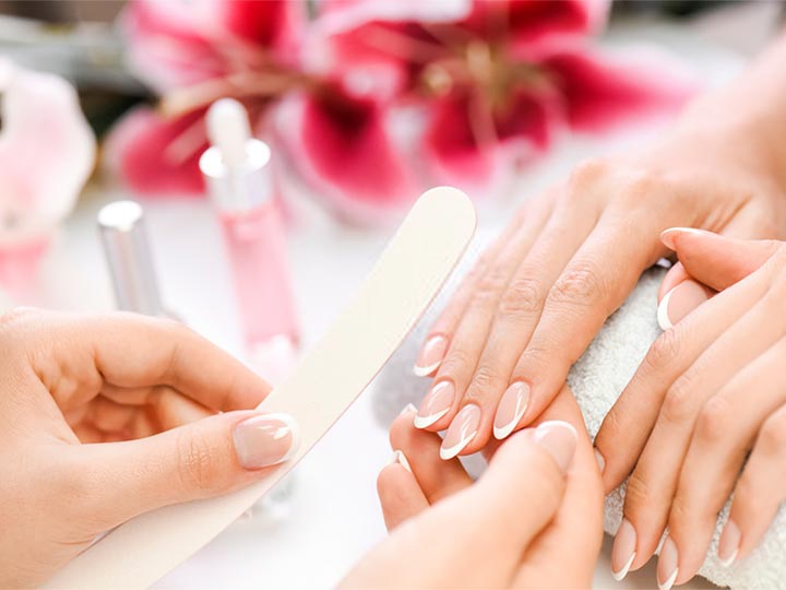 Nail Treatments. Have your hands soaked in lukewarm water then gently exfoliated with organic scrubs, cuticle groomed, nails neatly trimmed and filed in shape, and finished with the color and design of your choice.